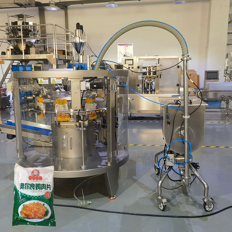 料理肉制品加工行業(yè)快速發(fā)展,奧爾良雞肉片作為主要流行商品,通過(guò)運(yùn)用腌制雞肉包裝機(jī)械能夠快速完成肉類商品包裝工作的保鮮性能、衛(wèi)生標(biāo)準(zhǔn)和生產(chǎn)效率等條件,奧爾良雞肉片包裝機(jī)通過(guò)集成化的設(shè)計(jì),能夠一鍵式啟動(dòng)執(zhí)行無(wú)人化的工作模式,它以全封閉式的工作狀態(tài),能夠完成從原材料的攪拌、制袋、機(jī)械手抓取、撐袋、定量充填、嚴(yán)密封合、日期打印、產(chǎn)量計(jì)數(shù)等操作工序。